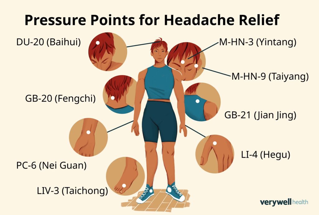 Puntos de presión de las manos para la migraña El valle de la Unión, también llamado punto de presión LI4 o Hegu, se encuentra entre la base del pulgar y el índice de cada mano . Presionar este punto puede reducir el dolor y las cefaleas.