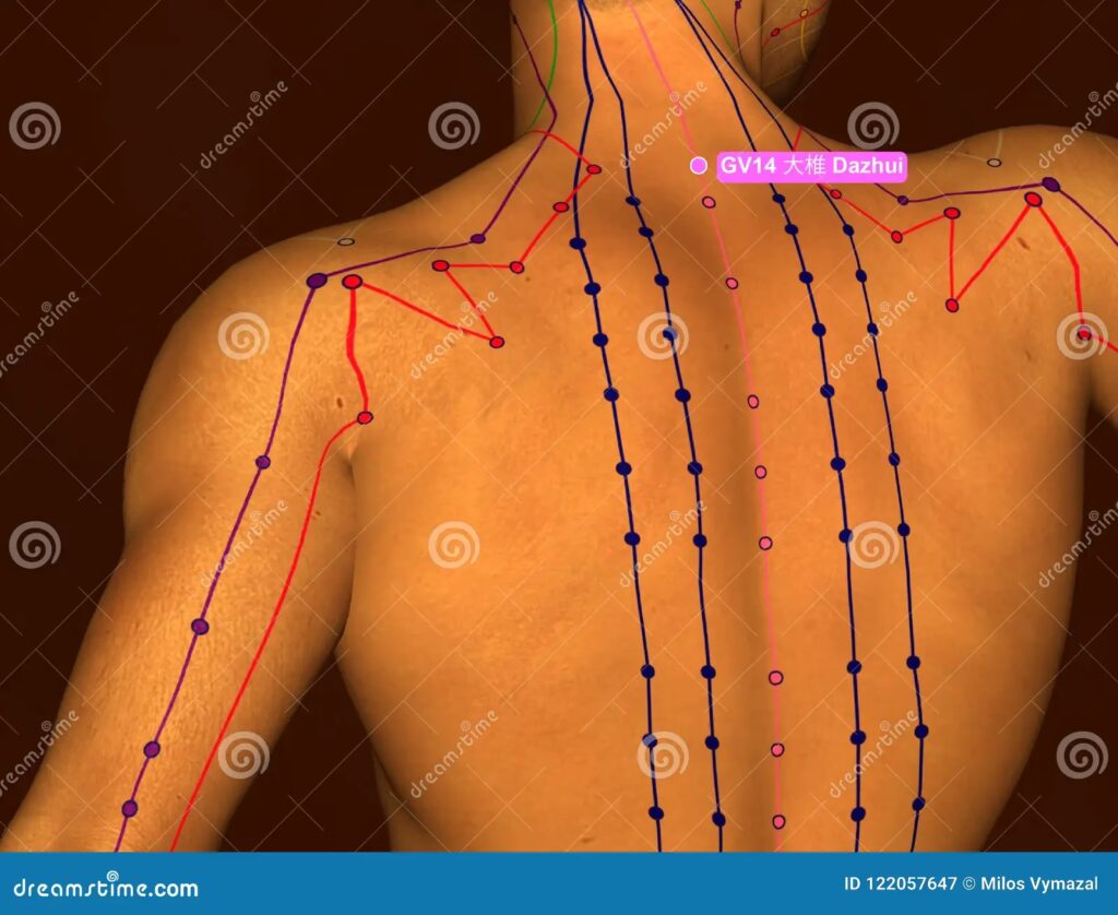 Además, Dazhui es considerado un punto reflejo del 'Viento perverso', indicando que es un área común por donde los patógenos externos, especialmente el Viento (que a menudo acompaña al Frío o al Calor), pueden entrar al cuerpo.