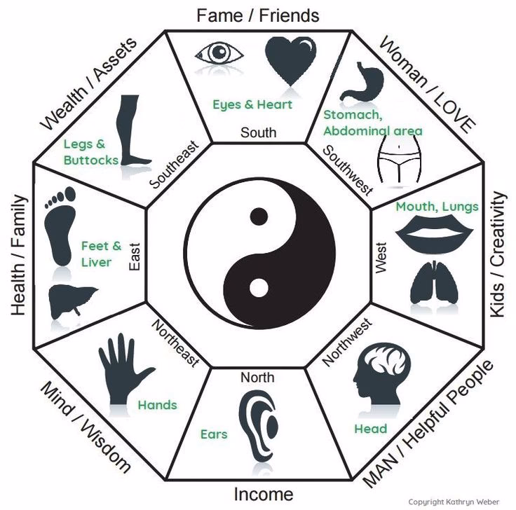 Una vez identificadas las áreas, puedes analizar el estado de cada una en tu espacio y realizar ajustes para potenciar la energía en esas áreas específicas de tu vida. Si deseas mejorar tu prosperidad, podrías enfocarte en la esquina de la Riqueza, asegurándote de que esté limpia, bien iluminada y decorada con elementos que representen la riqueza (como plantas saludables, objetos valiosos o colores asociados al dinero, como el púrpura o el verde). El Mapa Bagua te proporciona una guía visual para entender cómo diferentes partes de tu hogar se relacionan con diferentes aspectos de tu existencia, permitiéndote abordar áreas específicas que deseas mejorar.