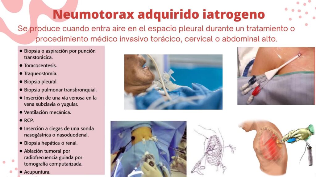Es relevante discutir el neumotórax en este contexto porque, además de las causas espontáneas o traumáticas directas, puede ser una complicación o riesgo asociado a ciertos procedimientos médicos o terapéuticos que involucran la pared torácica o estructuras cercanas.